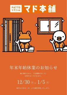 - 【年末年始休業のお知らせ】2025年12月30日(火)〜2026年1月5日(月)の間お休みをいただきます。